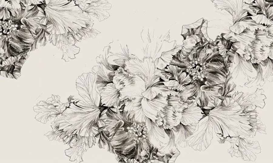Fototapeten Zeichnung von Blumen auf einem weißen Hintergrund