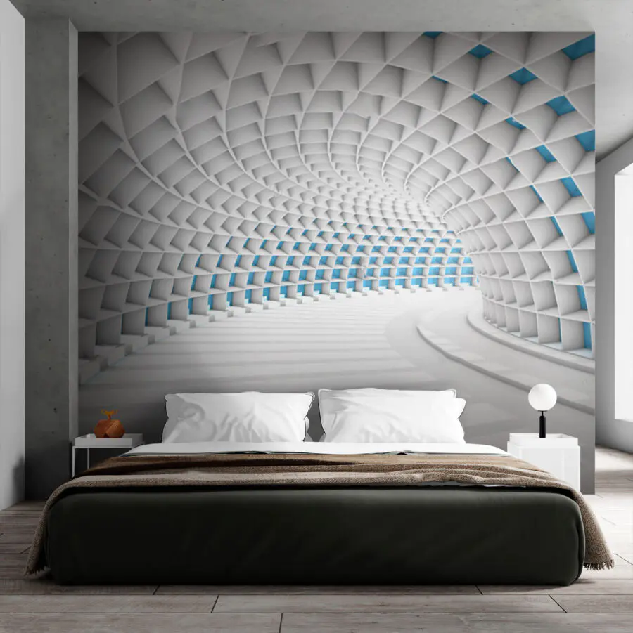Fototapeten Weißer Tunnel mit blauen Quadraten