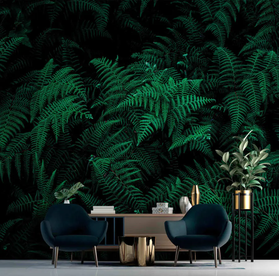 Fototapeten Üppige Farne in tiefen Grüntönen