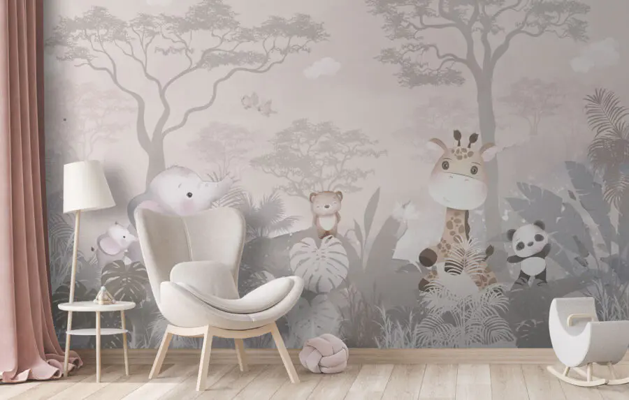 16.08 €8.84 €Fototapeten Eine Tapete mit Tieren und Bäumen