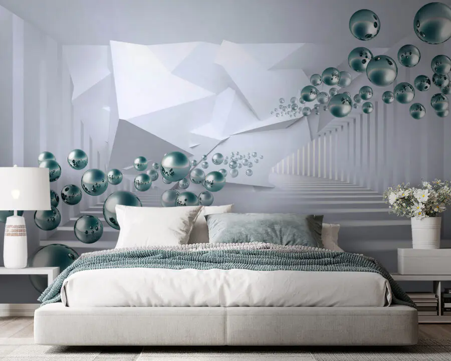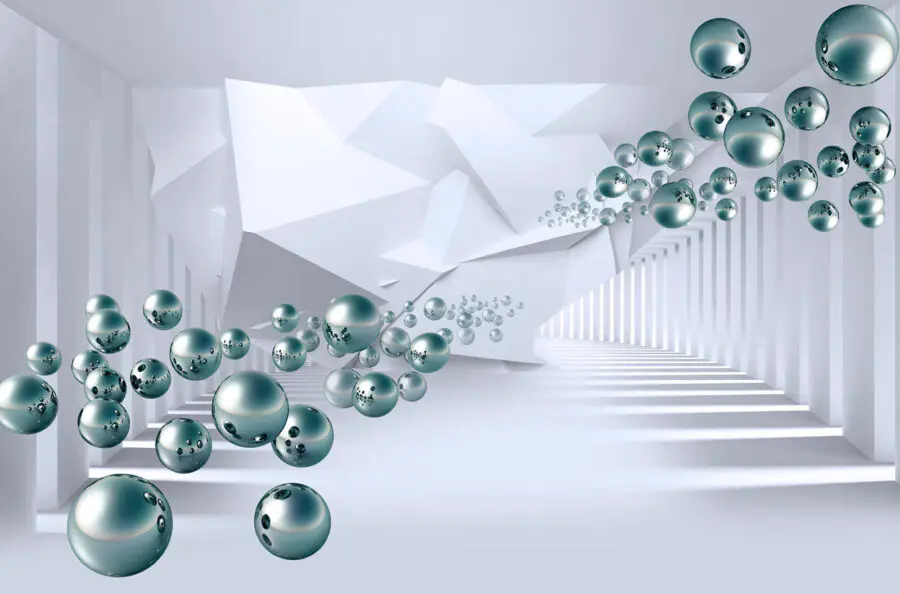 Fototapeten Weißer Raum mit weißen Wänden und weißen Säulen und silbernen Kugeln