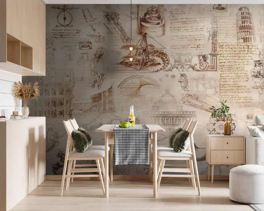 Verwandeln Sie jede Wand in einen Gesprächsanlass mit diesem atemberaubenden Wandbild mit historischen Illustrationen und Skizzen. Stellen Sie sich vor, Sie treten in eine Welt ein, in der Kunst und Geschichte aufeinandertreffen. Von der Erhabenheit antiker Architektur bis hin zu skurrilen Erfindungen gibt es so viel zu entdecken. Es ist, als hätte man eine Bibliothek mit Abenteuern direkt an der Wand! Freunde werden sich in den komplizierten Details verlieren, während sie bei einem Kaffee Geschichten erzählen und kichern. Dieses Wandbild verleiht einem Raum nicht nur Charakter, sondern auch eine Dosis Neugierde, die die Fantasie anregt. Gestalten Sie eine gemütliche Ecke oder eine auffällige Wand - in jedem Fall wird sie Freude und Inspiration auslösen.