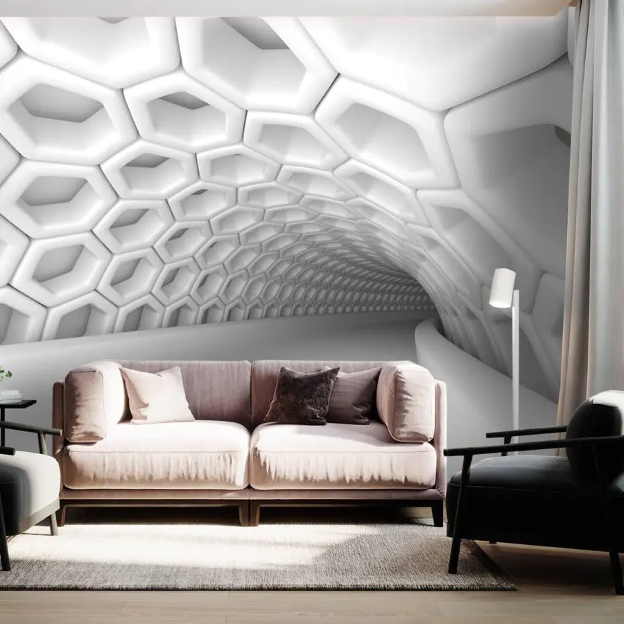 Verwandeln Sie jeden Raum mit dieser hypnotisierenden Fototapete "Weißer Tunnel mit Sechsecken". Es ist, als würde man in eine verträumte, futuristische Welt eintauchen, in der die Geometrie die Oberhand hat. Die klaren Weißtöne erzeugen ein Gefühl der Unendlichkeit und laden zu Gedanken an weite Räume ein, während sie gleichzeitig modern und elegant sind. Stellen Sie sich vor, Sie schlürfen Ihren Morgenkaffee vor dieser Schönheit - jedes Sechseck hat eine fast hypnotische Ausstrahlung. Es fühlt sich an, als würden die Wände Geheimnisse der Design-Meisterschaft flüstern und Sie in eine heitere Flucht ziehen. Perfekt für Wohn- und Büroräume, tanzt es zwischen abstrakten und geometrischen Stilen. Es ist nicht nur Dekoration, sondern auch ein Gesprächsanlass. Machen Sie sich bereit für einige "Wow, woher hast du das?"-Momente!