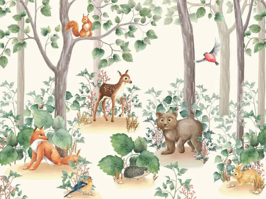 Fototapeten Hintergrundbild mit Tieren im Wald