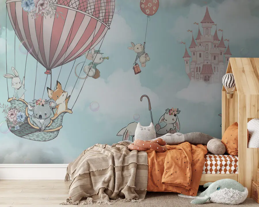 Fototapeten Cartoon von Tieren in einem Heißluftballon
