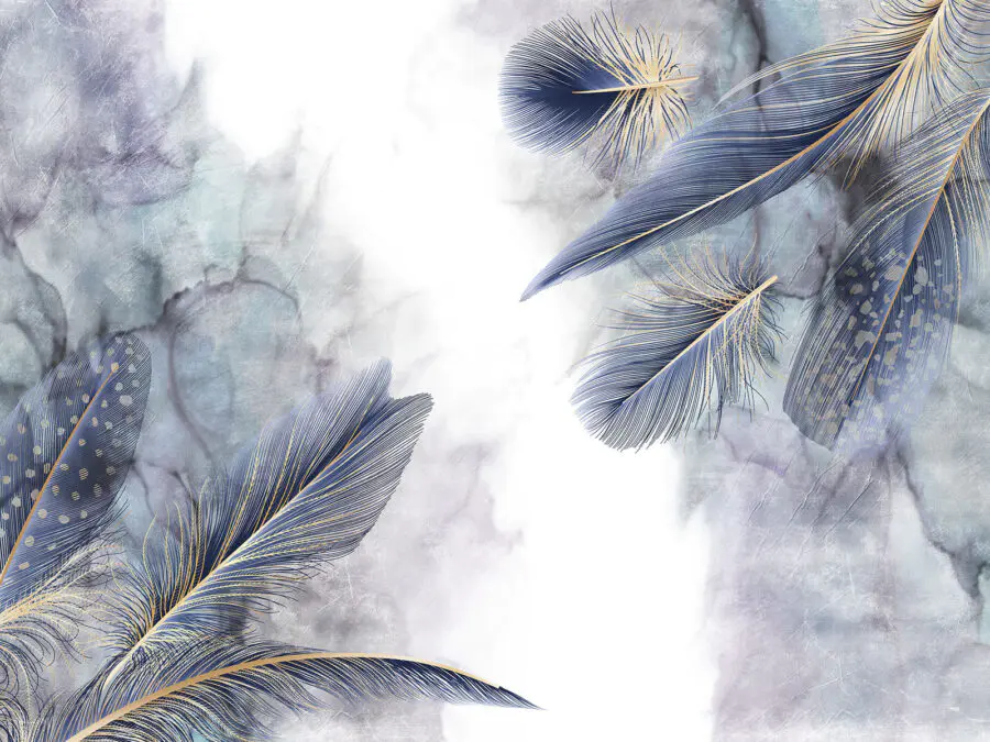 Fototapeten Ätherische Federn tanzen auf Nebel