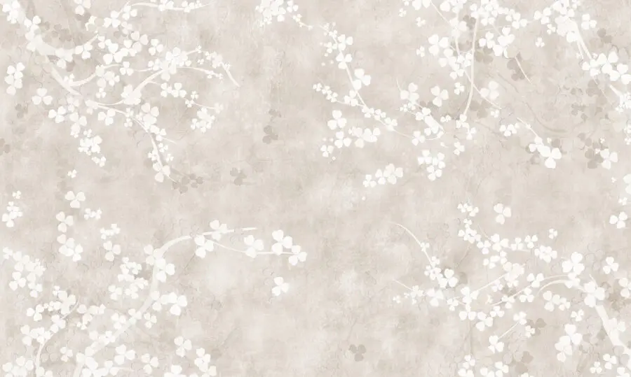 Fototapeten Weiße Blumen auf beigem Hintergrund