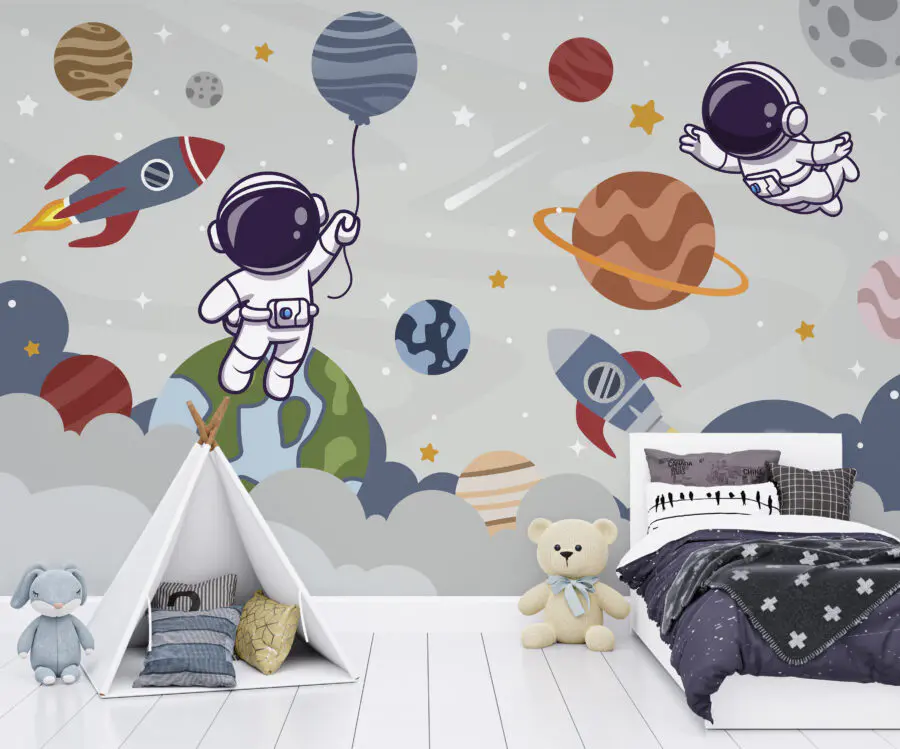 16.33 €9.79 €Fototapeten Grauer Hintergrund mit Wolken und Raketen