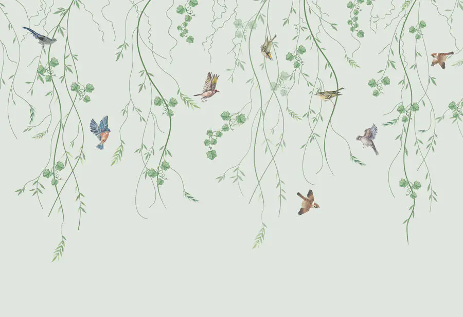 Fototapeten Tapete mit Vögeln und Ranken