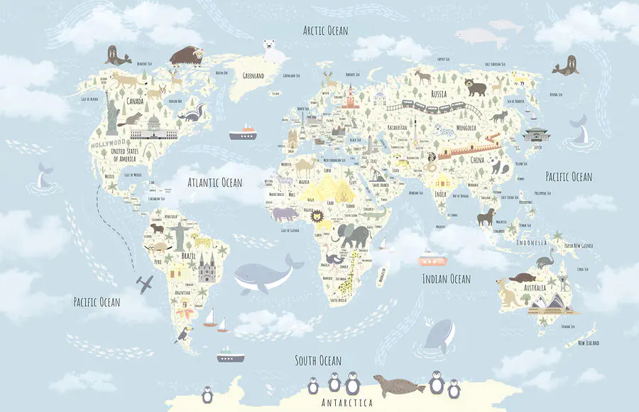 15.51 €9.31 €Fototapeten Karte der Welt mit Tieren und Vögeln