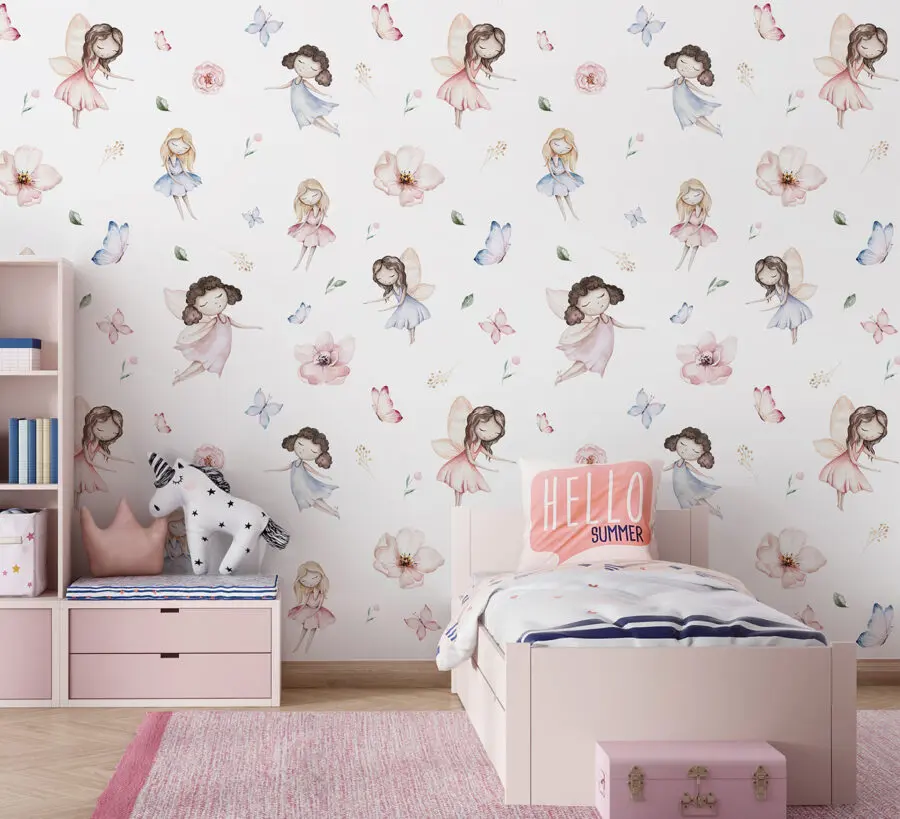 Fototapeten Muster von Feen und Schmetterlingen