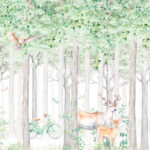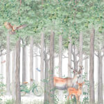 Fototapeten Ein Gemälde mit Tieren in einem Wald