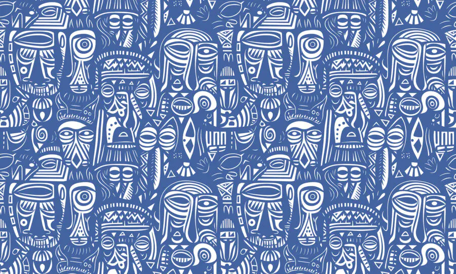 Fototapeten Blaues und weißes Muster von Gesichtern