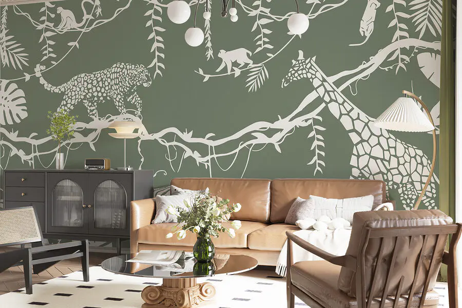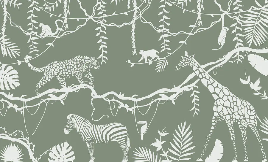 Fototapeten Eine Tapete mit Tieren und Pflanzen