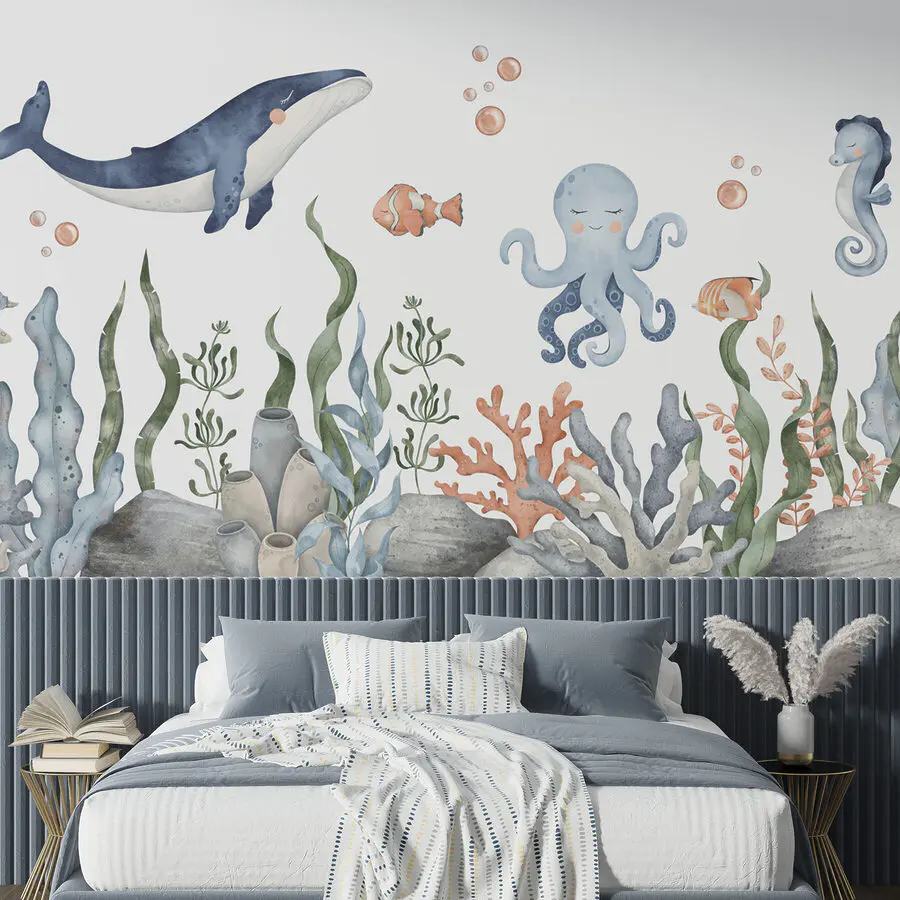 Fototapeten Ein Wal und ein Oktopus unter Wasser