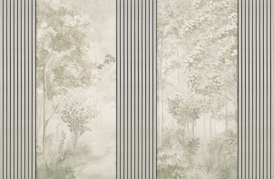 Fototapeten Eine Tapete mit Bäumen und Blumen