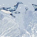 Fototapeten Ein Wal und Stachelrochen schwimmen im Meer