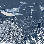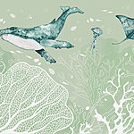 15.51 €9.31 €Fototapeten Gruppe von Fischen und Walen, die im Meer schwimmen