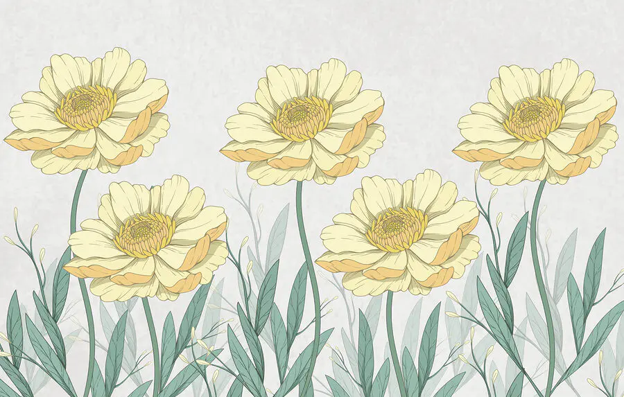 Fototapeten Gruppe von gelben Blüten mit grünen Blättern