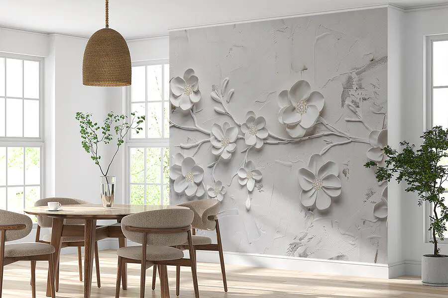 Stellen Sie sich vor, Sie wachen jeden Morgen mit dem Anblick zarter weißer Blumen auf, die in Kaskaden über Ihre Wand fallen. Diese Fototapete mit dem Titel "Weiße Blumen auf weißem Untergrund" ist wie eine Gartenparty in Ihrem Zuhause, nur ohne Ungeziefer und Wetter. Es passt perfekt in Kategorien wie "3D-Blumentapeten" und "Designertapeten für Wände" und verspricht, jeden Raum in ein verträumtes Blumenparadies zu verwandeln. Stellen Sie sich vor: Sie sitzen bei einer Tasse Tee, und die subtilen 3D-Elemente des Designs beginnen mit dem Licht zu spielen, wodurch ein fast magisches Gefühl entsteht. Es ist, als würden die Blumen sanft nach Ihnen greifen und Ruhe und Gelassenheit in Ihren Tag einladen. Es ist nicht nur wunderschön, sondern auch eine sanfte Erinnerung daran, dass manchmal nur Einfachheit nötig ist, um eine starke Aussage zu machen. Dieses Wandbild fügt sich nahtlos in eine moderne Einrichtung ein und bietet eine schicke und anspruchsvolle Atmosphäre, ohne zu übertrieben zu sein. Es ist die perfekte Mischung aus Kunst und Natur und verleiht Ihrem Raum eine elegante Auffrischung, ohne dass Sie dabei ins Schwitzen kommen. Ganz gleich, ob Sie ein Designliebhaber sind oder einfach nur einen Hauch von floralem Charme lieben, dieses Wandbild ist wie ein Hauch von frischer Luft - direkt in Ihrem eigenen Zuhause. Klingt das nicht herrlich?