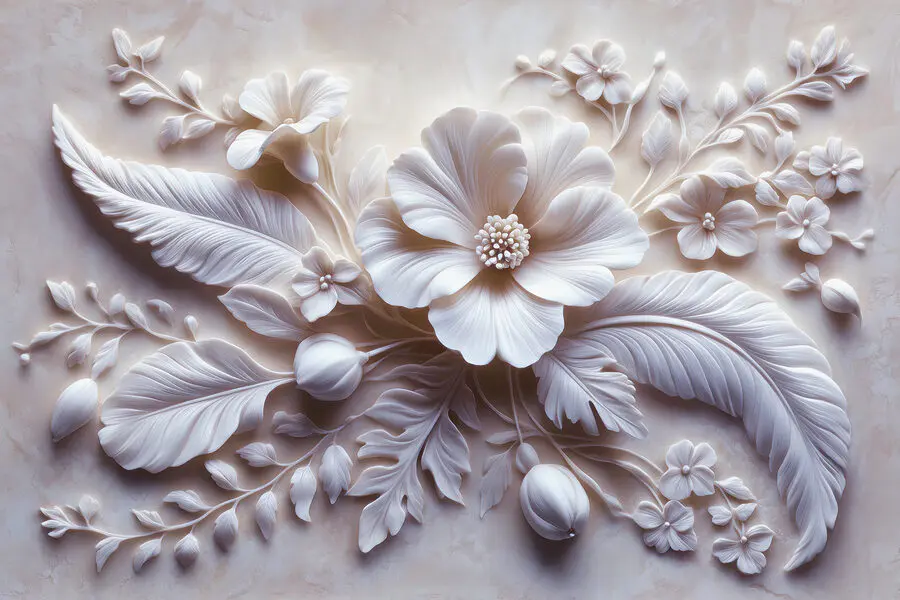 Fototapeten Weiße Blüte und Blätter