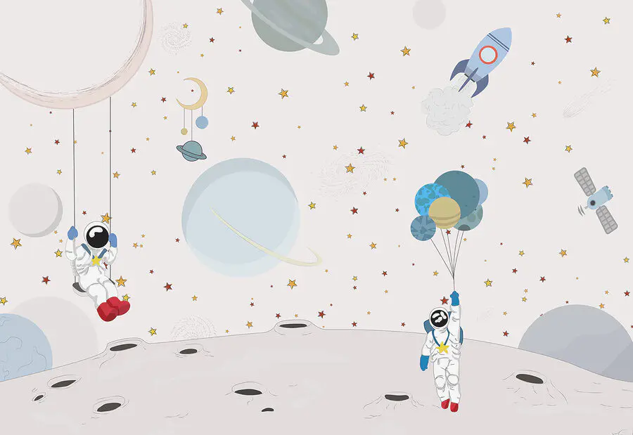 Fototapeten Karikatur von Astronauten auf dem Mond