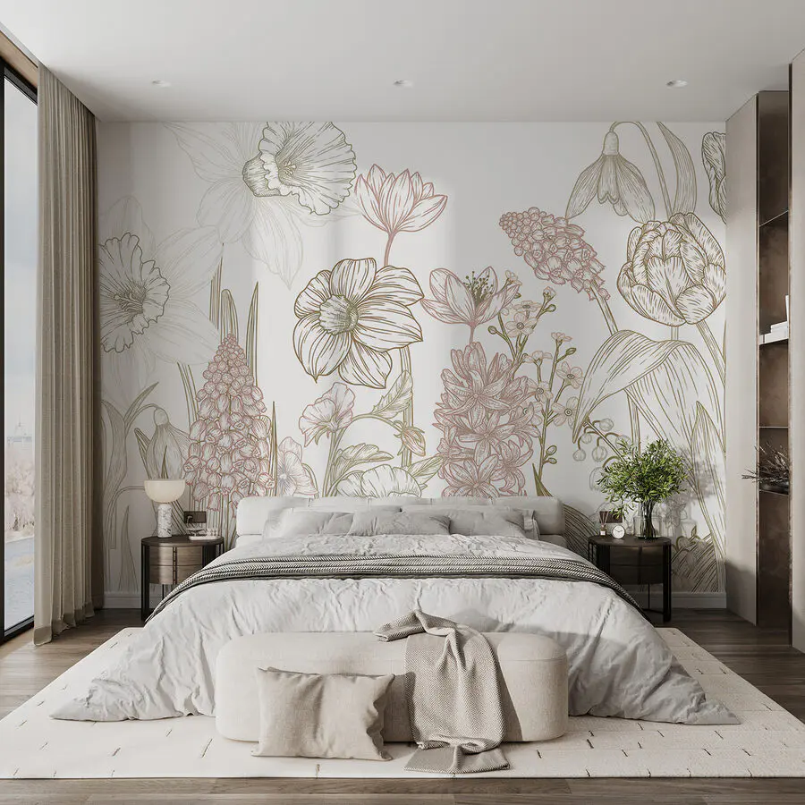 Fototapeten Zeichnung von Blumen und Pflanzen