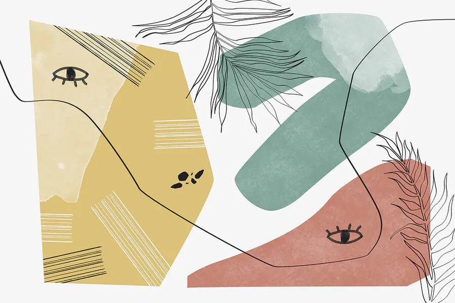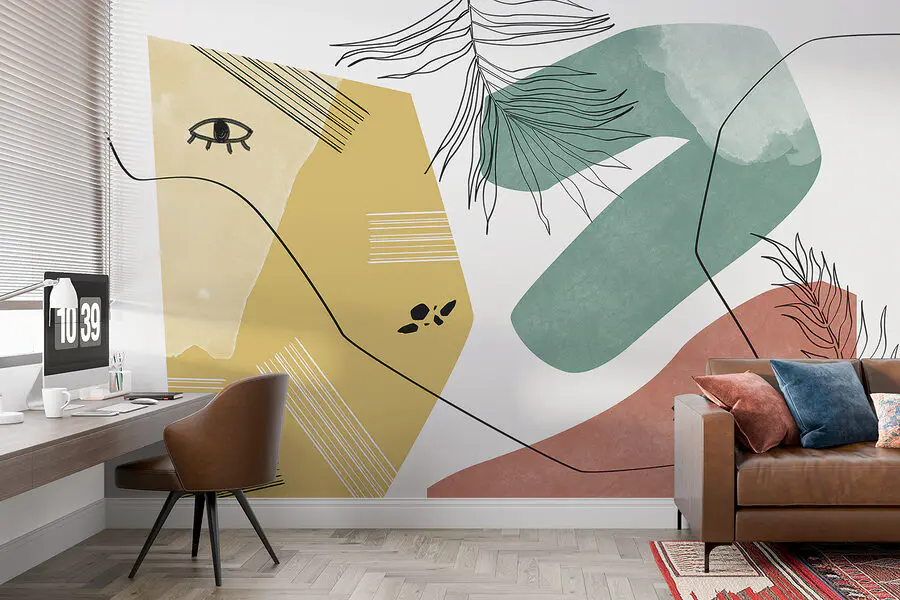 15.51 €9.31 €Fototapeten Eine bunte Kunst mit schwarzen und weißen Kreisen und Blättern