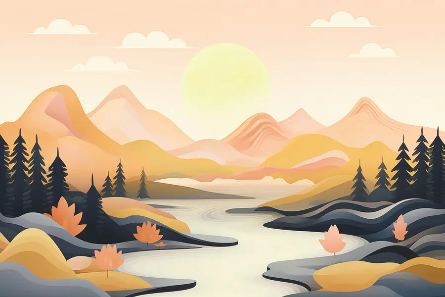15.51 €9.31 €Fototapeten Gemälde von Bergen und Sonne