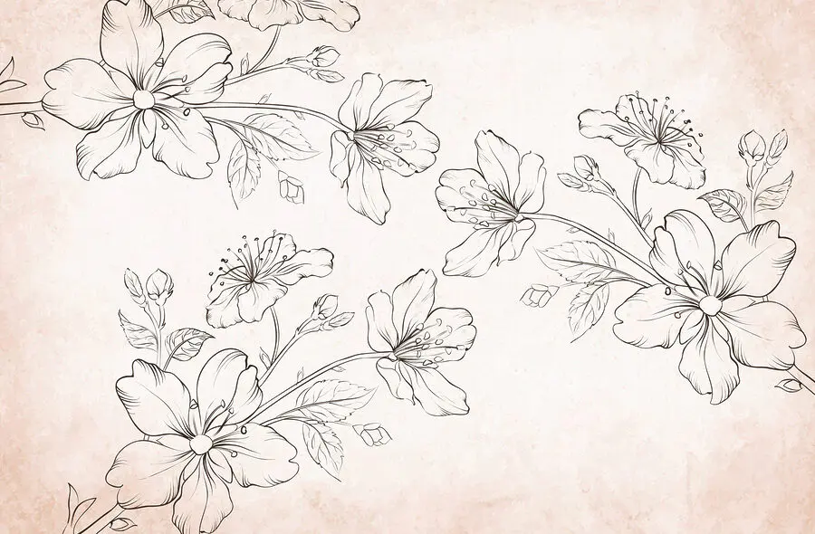 Fototapeten Zeichnung von Blumen auf einem weißen Hintergrund