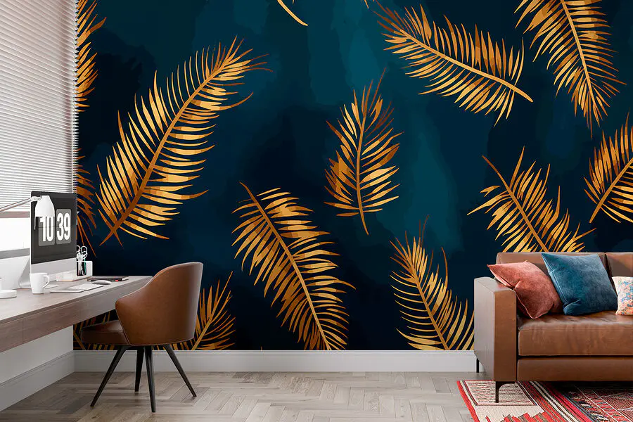 Fototapeten Bronzene Blätter gegen dunkle Eleganz