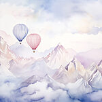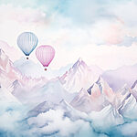 Fototapeten Gruppe von Heißluftballons in den Himmel über den Bergen