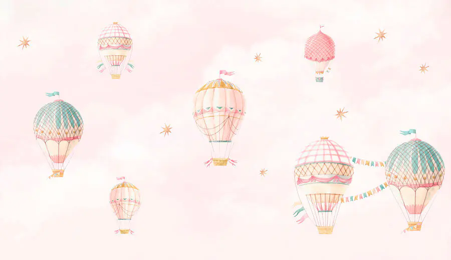 16.92 €9.31 €Fototapeten Gruppe von rosa Wolken und ein Hase hält Luftballons