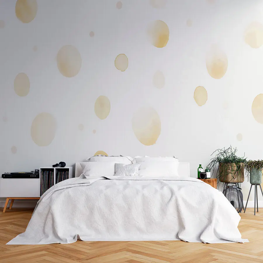 Fototapeten Weiße und gelbe Tupfen-Tapete