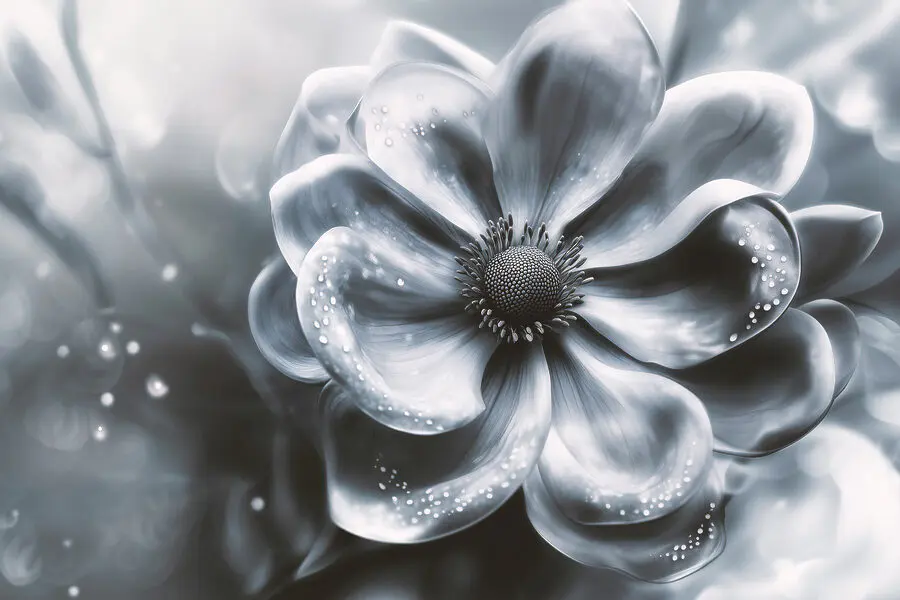 Mit der Fototapete "Delicate Flower with Soft Petals" können Sie jeden Raum umgestalten. Dieses atemberaubende Werk fängt die Essenz der Natur auf eine Weise ein, die so beruhigend ist wie eine sanfte Brise an einem Frühlingsmorgen. Stellen Sie sich vor, Sie wachen mit diesen sanften, einladenden Blütenblättern auf, die Ihren Wänden süße Nichtigkeiten zuflüstern - wer würde da nicht lächeln? Ganz gleich, ob Sie eine gemütliche Leseecke verschönern oder Ihr Esszimmer aufpeppen möchten, dieses Wandbild sorgt für eine angenehme Atmosphäre. Die Grautöne fügen sich mühelos in jede Einrichtung ein und schaffen eine ruhige Kulisse. Es ist, als hätte man die Natur im Haus, nur dass man nicht niesen muss! Perfekt für alle, die die feinen Dinge des Lebens zu schätzen wissen, es aber dezent und schick halten wollen. Lassen Sie die Blume einen Hauch von Ruhe in Ihren Alltag bringen.