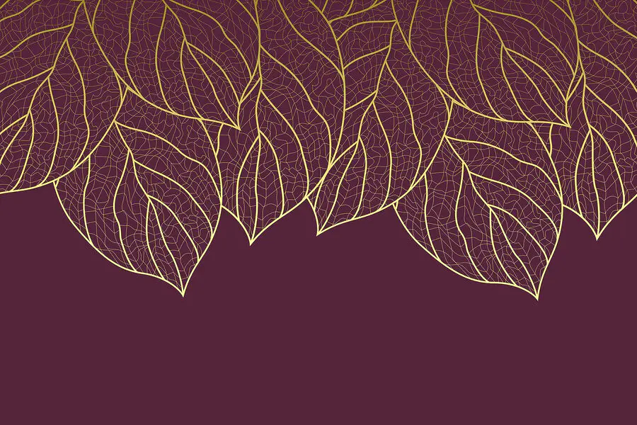 Fototapeten Elegante Blätter auf tief kastanienbraunem Hintergrund