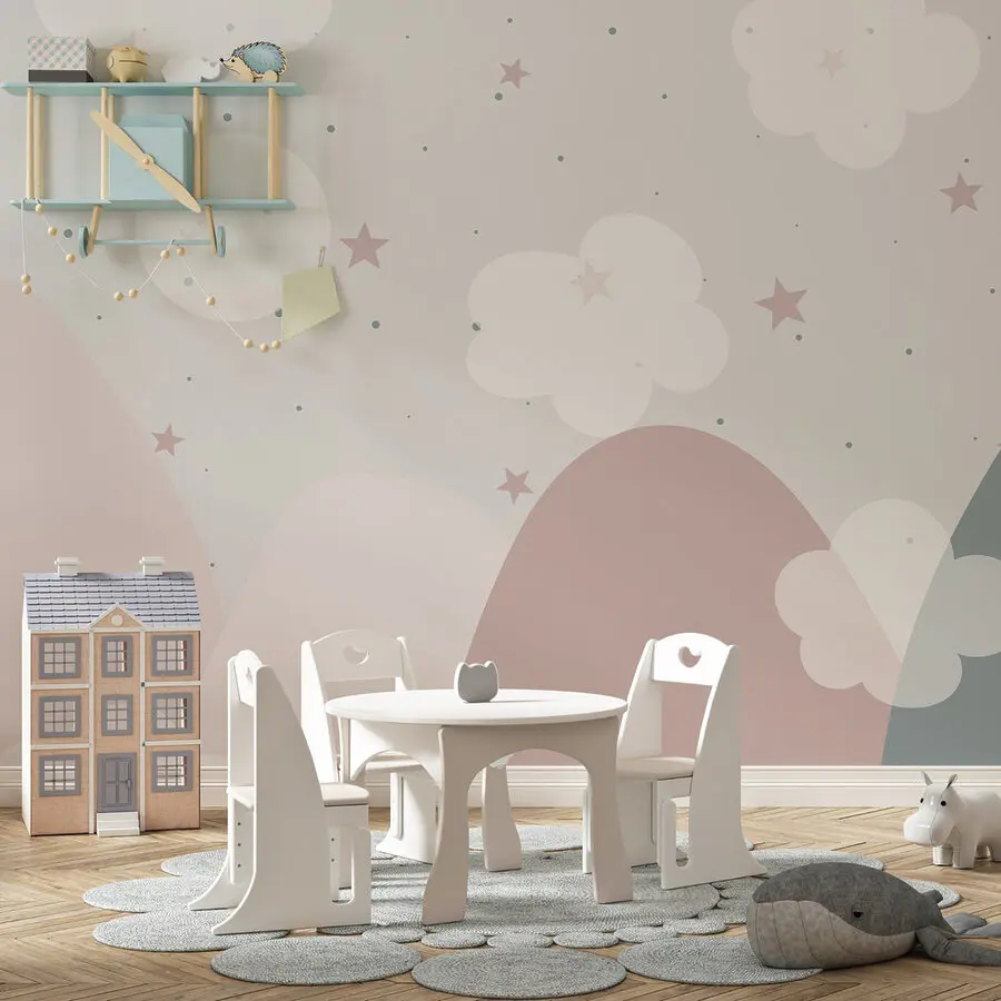 Verwandeln Sie jeden Raum in einen traumhaften Rückzugsort mit dieser entzückenden Fototapete "Landschaft mit Wolken und Sternen". Stellen Sie sich vor, Sie wachen auf, umgeben von sanften, pastellfarbenen Bergen und funkelnden Sternen - es ist wie eine kuschelige Umarmung des Universums! Diese Fototapete hat eine skurrile Ausstrahlung, die sich perfekt für Kinderzimmer, Spielbereiche oder sogar eine ruhige Ecke in Ihrem Büro eignet. Die sanften Farben schaffen eine beruhigende Atmosphäre, die zum Träumen einlädt oder dazu, es sich mit einem guten Buch gemütlich zu machen. Stellen Sie sich ein Spieltreffen vor, bei dem das Kichern widerhallt, während sich die Kleinen Abenteuer in einem magischen Himmel ausmalen. Es ist nicht nur Dekoration, es ist ein Portal zur Fantasie. Verleihen Sie Ihren Wänden einen Hauch von Wunder!