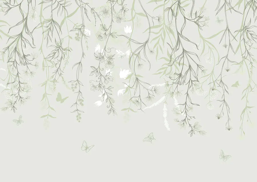 Fototapeten Gelassene botanische Illustration mit Schmetterlingen