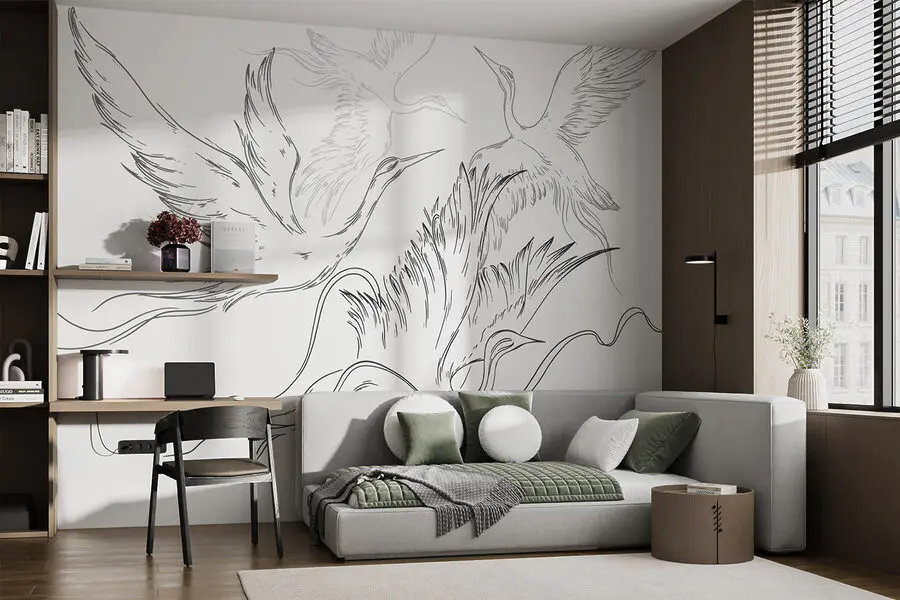 Fototapeten Zeichnung von fliegenden Vögeln