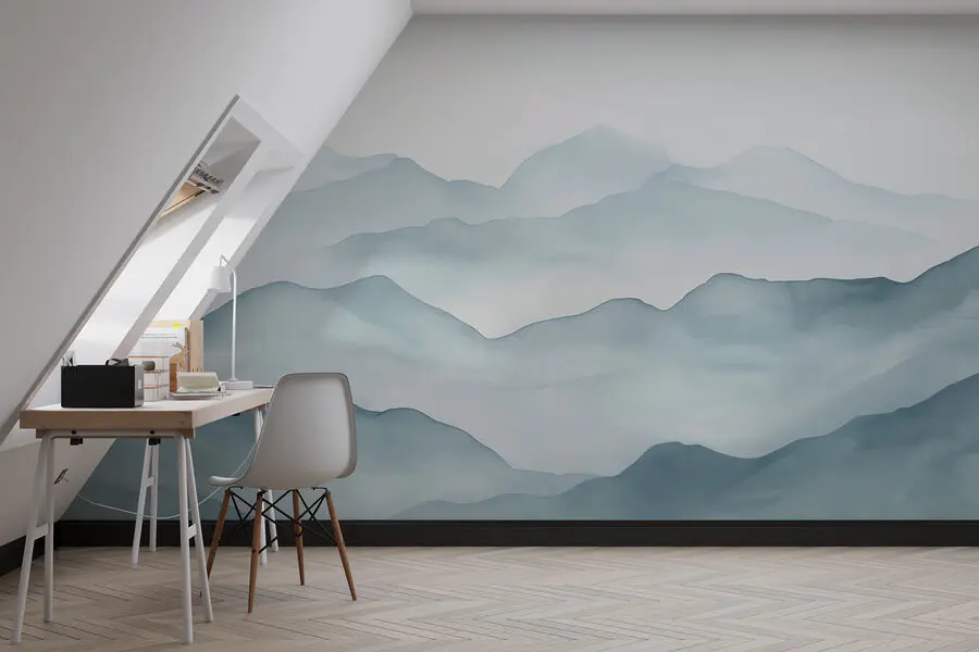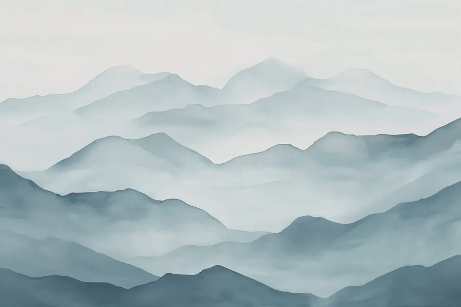 Verwandeln Sie Ihren Raum mit der Fototapete "Foggy Mountain Range" - es ist, als hätten Sie einen ruhigen Urlaubsort direkt an Ihren Wänden. Stellen Sie sich vor, Sie wachen mit dieser sanften, von Aquarellfarben inspirierten Aussicht auf. Hier dreht sich alles um diese beruhigenden Blau- und Grautöne, die friedliche Stimmung verbreiten, während sie durch den Raum tanzen. Perfekt für jeden, der von nebligen Wanderungen oder gemütlichen Hütten in den Wäldern träumt. Stellen Sie sich vor, Sie schlürfen einen Kaffee und genießen die ruhige Atmosphäre - wer braucht da noch Urlaub? Dieses Wandbild dekoriert nicht nur, es lädt die Ruhe in Ihr Leben ein. Ein kleines Stück Natur, direkt bei Ihnen zu Hause!