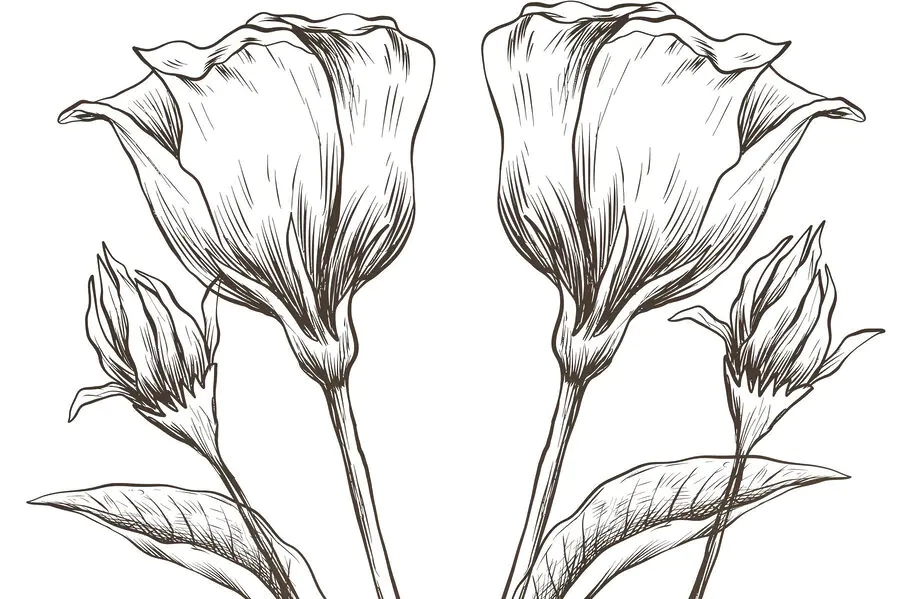 Fototapeten Zeichnung von Blumen auf einem weißen Hintergrund