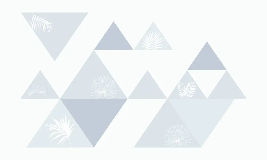 Fototapeten Weiße und blaue Dreiecke mit Blättern