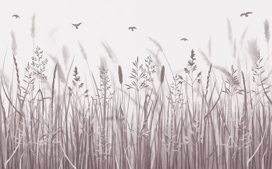 Fototapeten Grasfeld mit fliegenden Vögeln