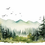 Fototapeten Aquarell von Wald und Bergen
