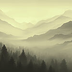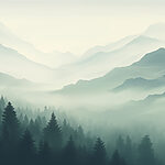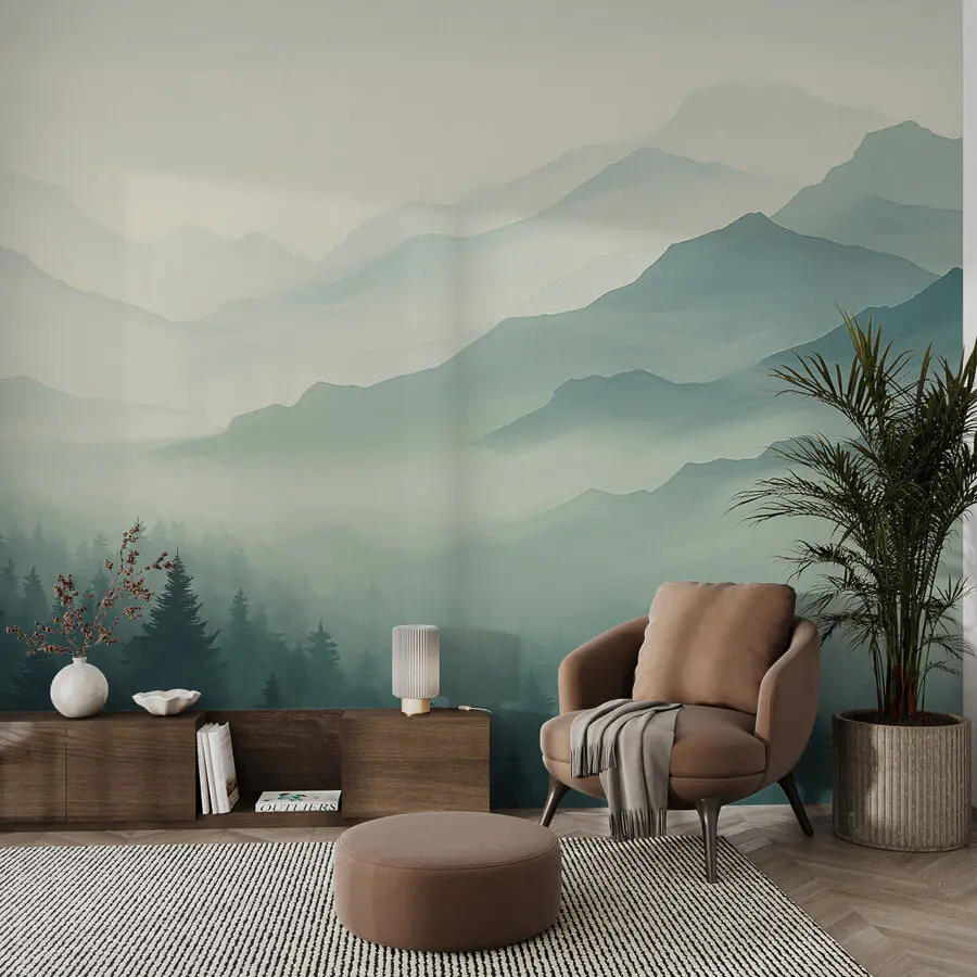 16.33 €9.79 €Fototapeten Landschaft mit Bergen, Bäumen und Nebel
