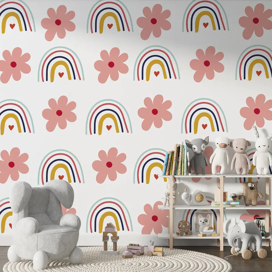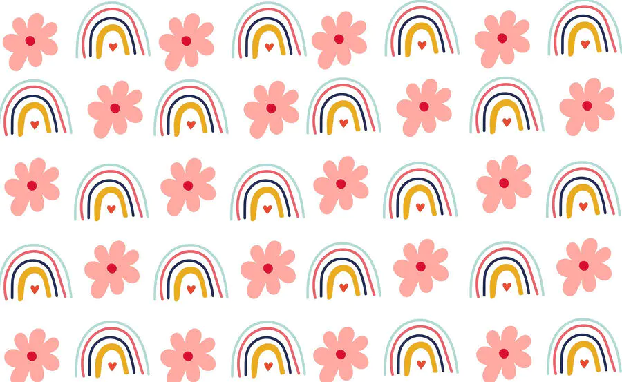 Fototapeten Muster aus Blumen und Regenbögen