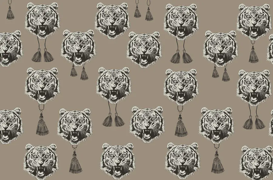 Fototapeten Muster aus Tigerköpfen mit Quasten