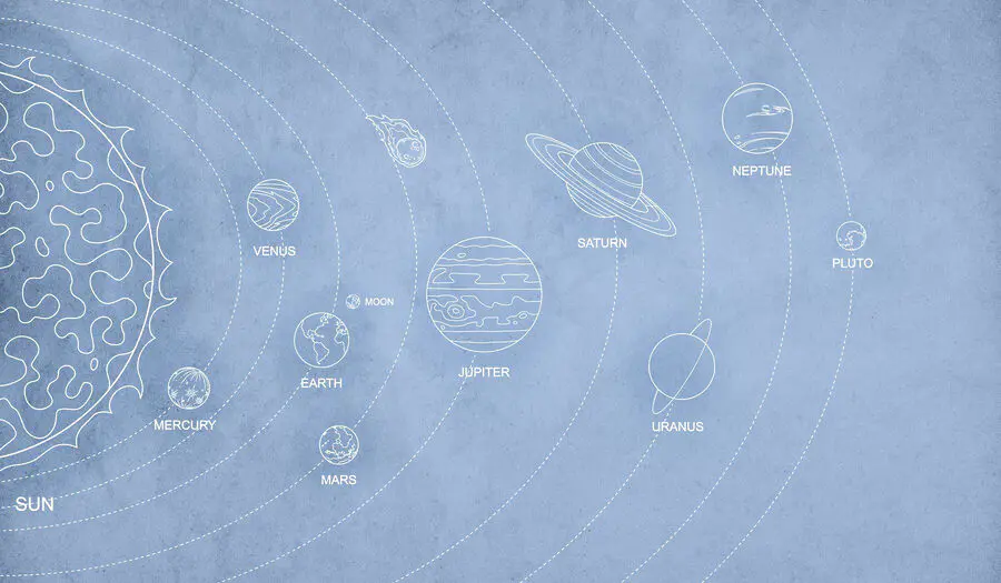 Fototapeten Diagramm der Planeten und ihrer Namen
