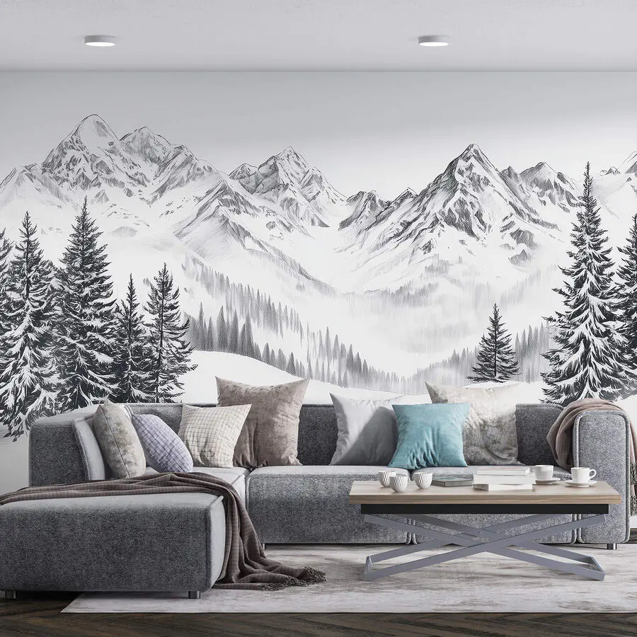 Fototapeten Zeichnung eines verschneiten Gebirges
