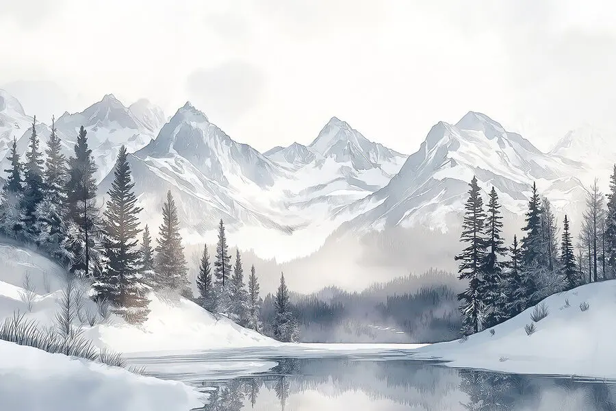 15.51 €9.31 €Fototapeten Zeichnung eines verschneiten Gebirges